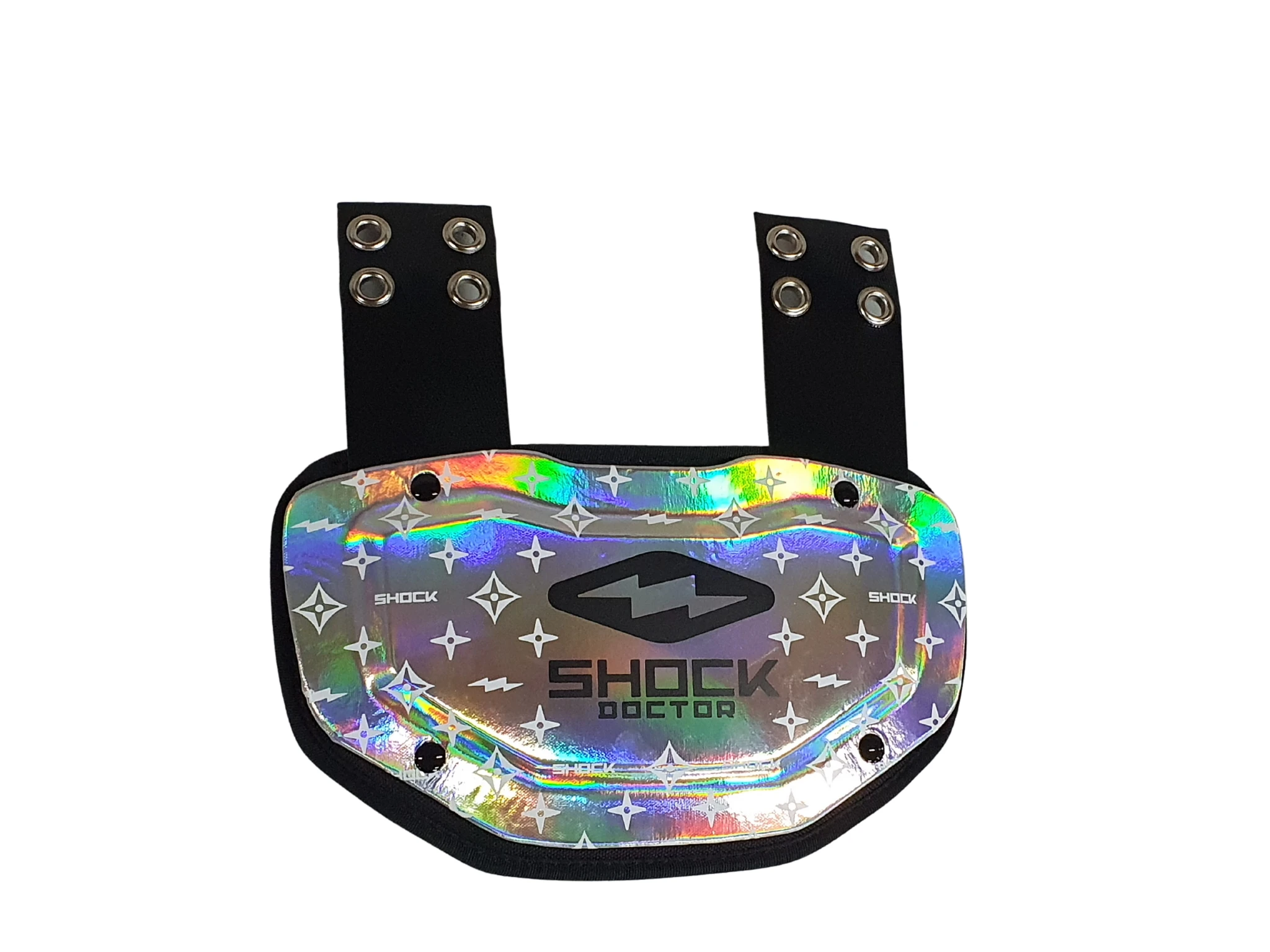 Show off. Show out. Showtime. The new Showtime Back Plate combines legendary performance and protection with our exclusive design. Show your colors with pride and protect your blindside. Complete your kit with Shock Doctor Showtime Chin Straps and Tethers.